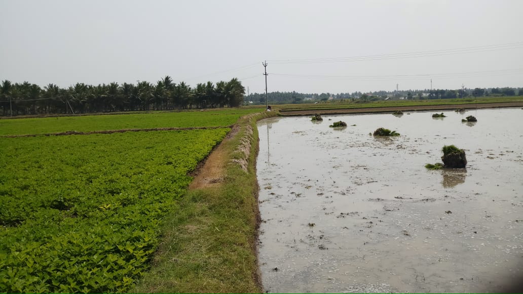 Agriculture land growing groundnut nearby Peravurani Periyakulam lake, Thanjavur District