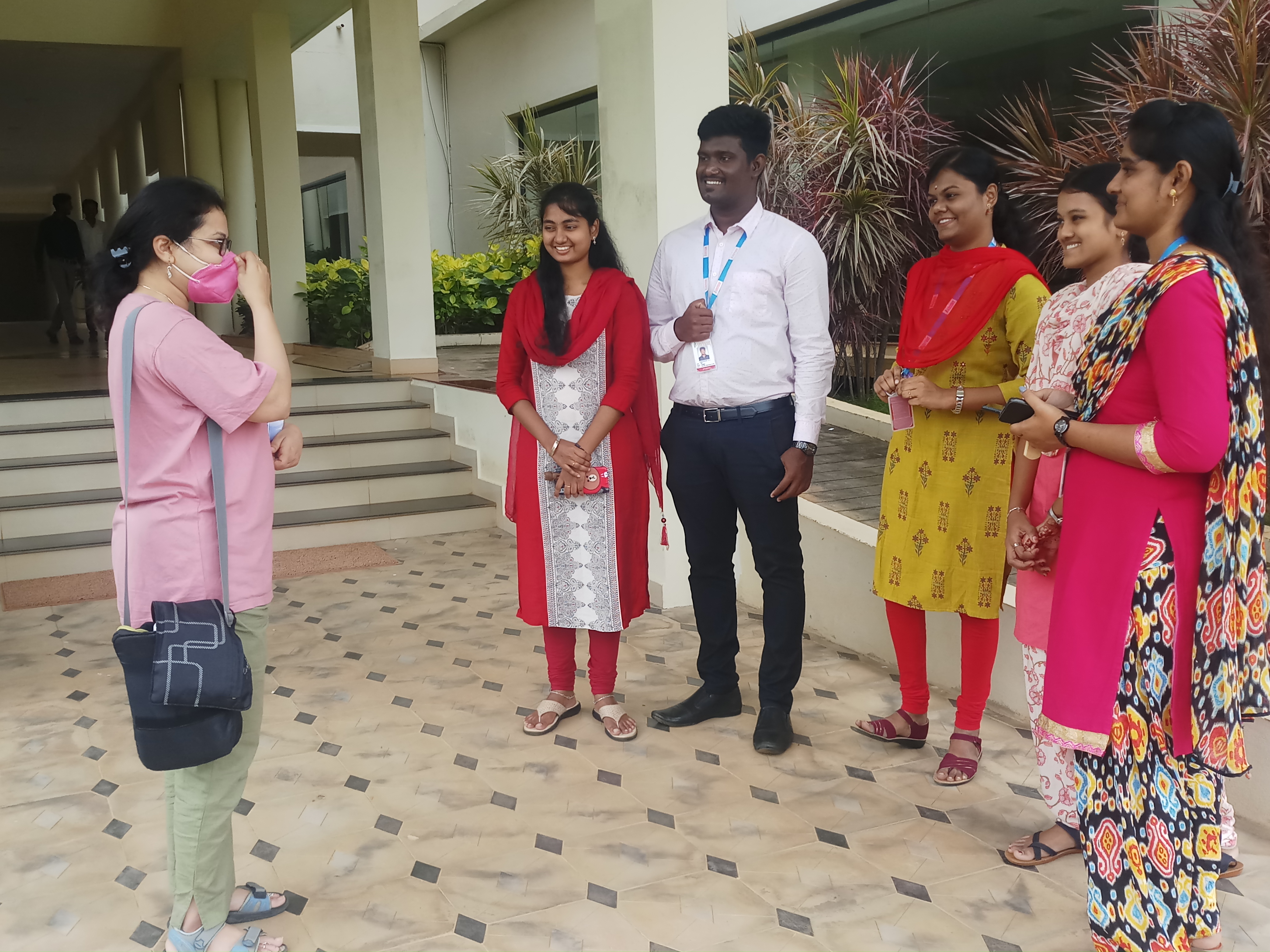 Meeting with student volunteers at Gnanam School of Business, Tanjore.