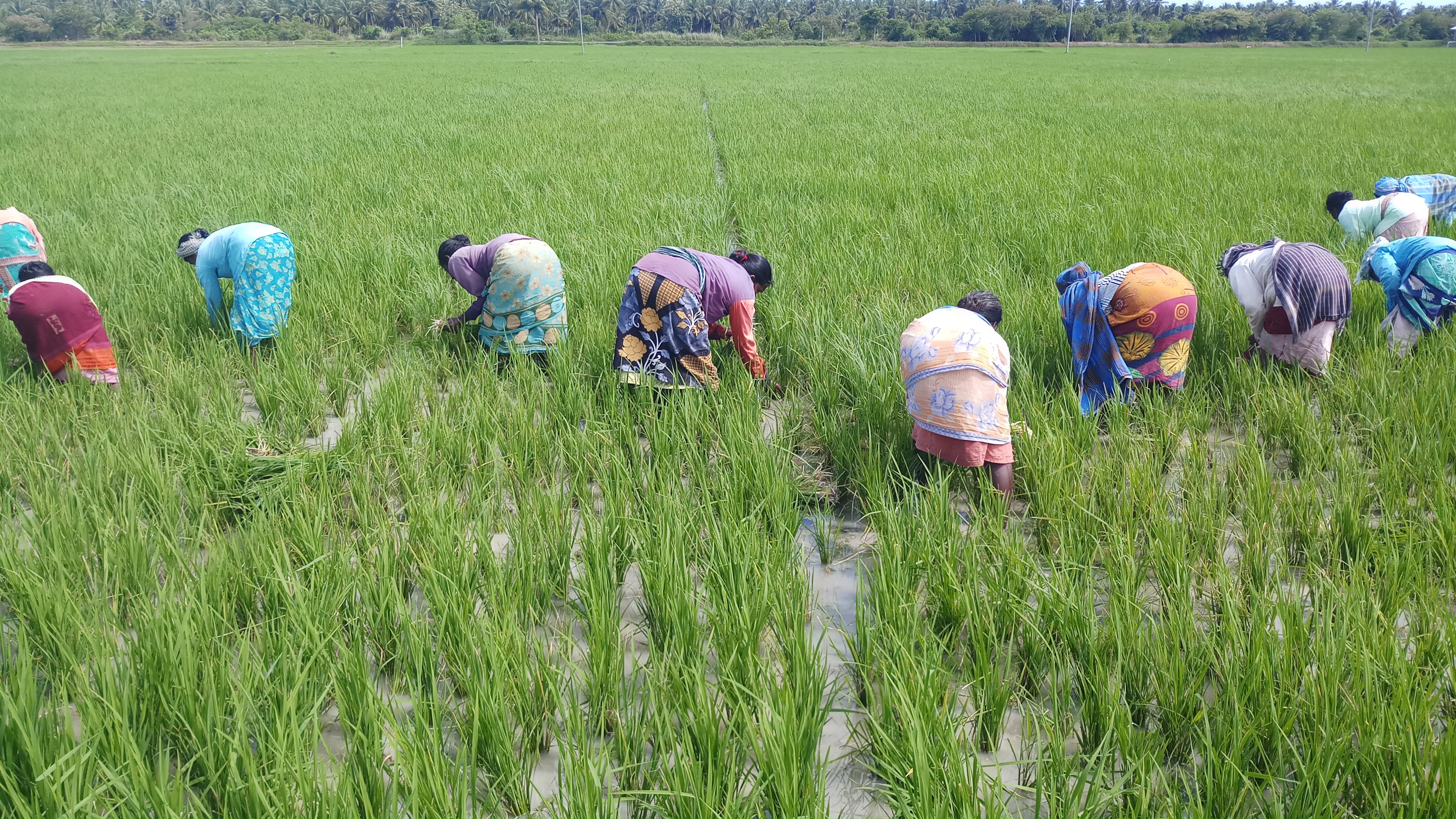 Women weeding a field in Ambalapattu village, Thanjavur district