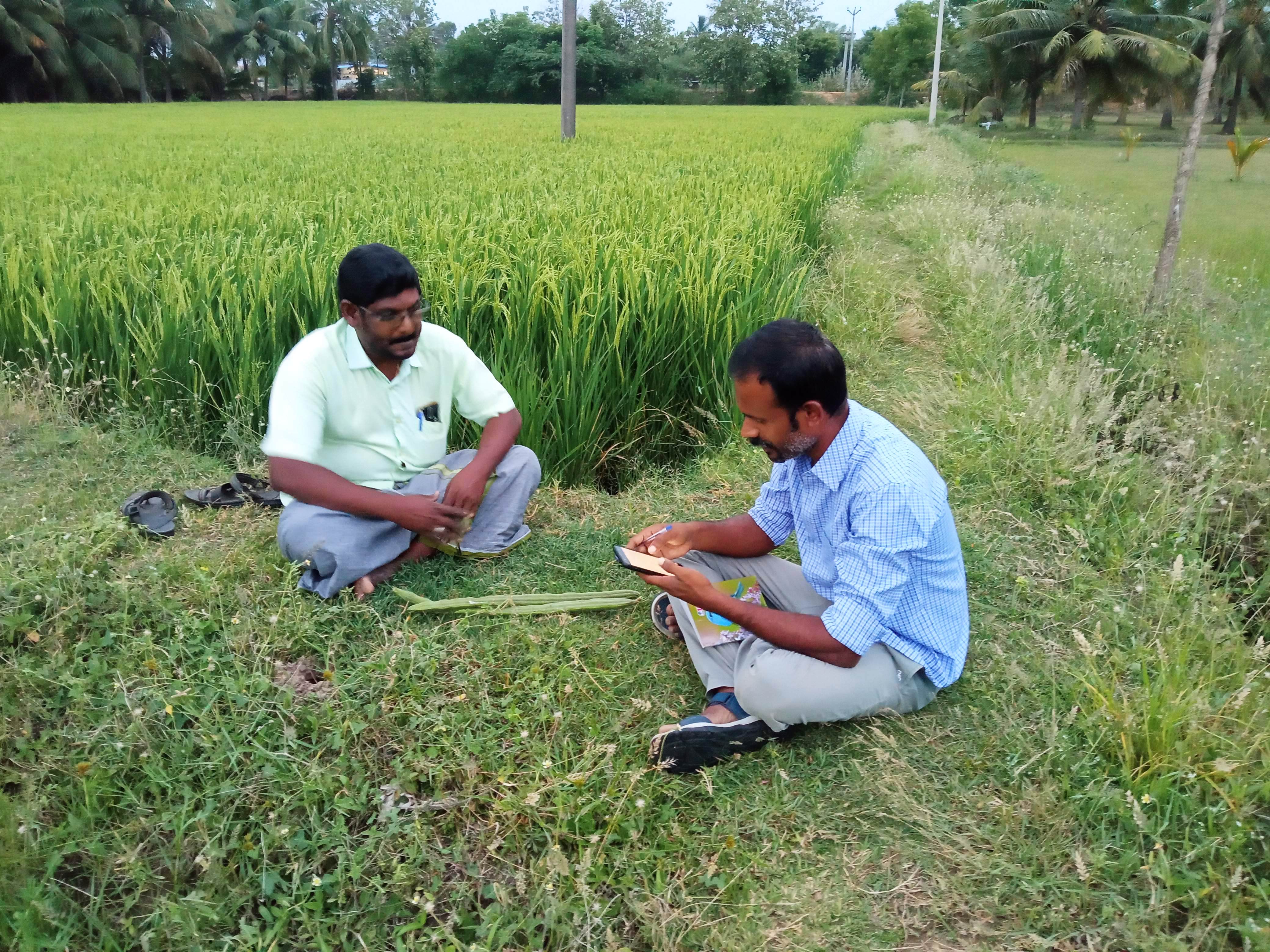 Interviewing the farmer in field, Needamangalam in Tiruvarur District