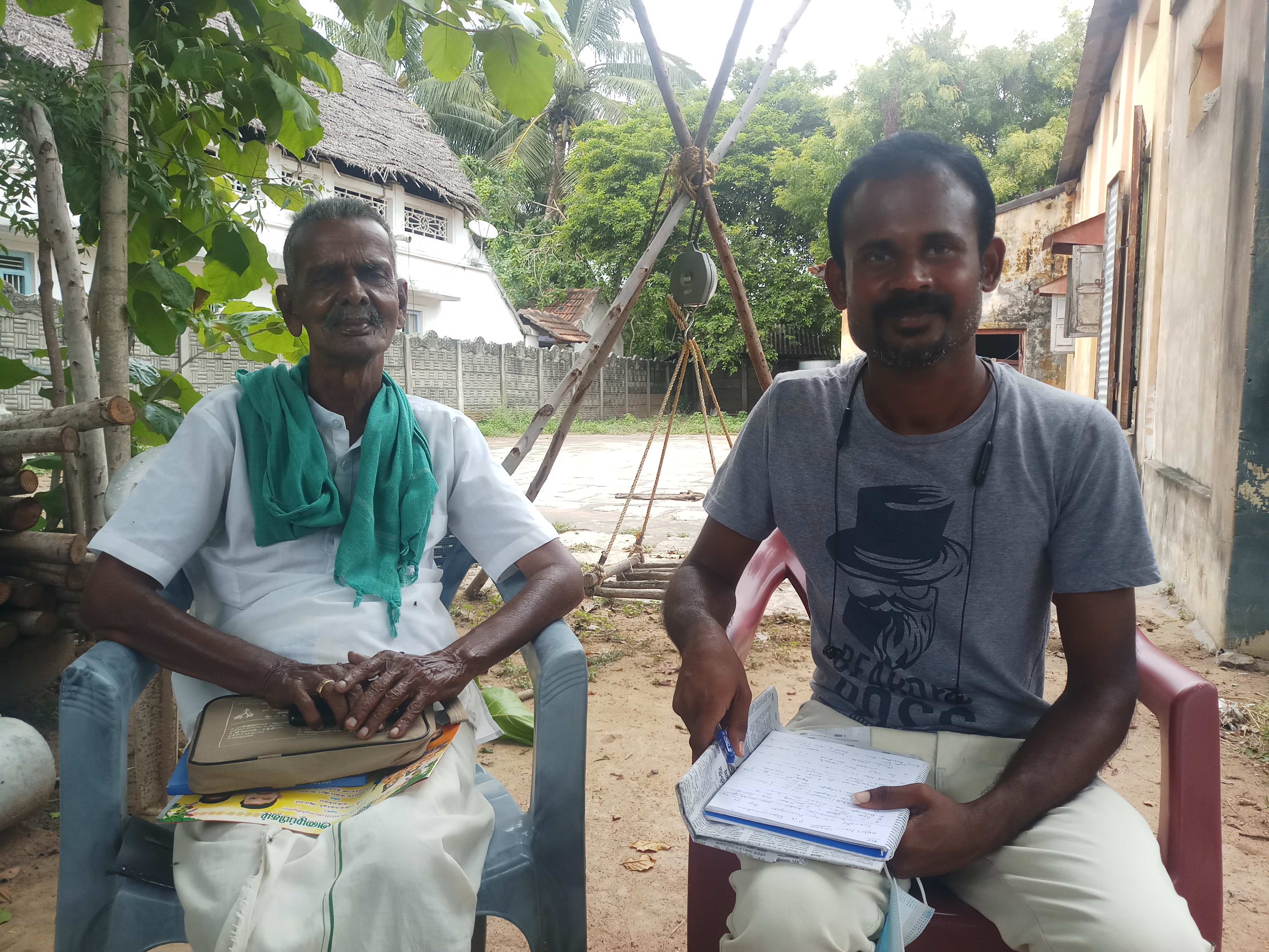 Interviewing with a farmer in his field near Peravurani Periyakulam in Peravurani town.