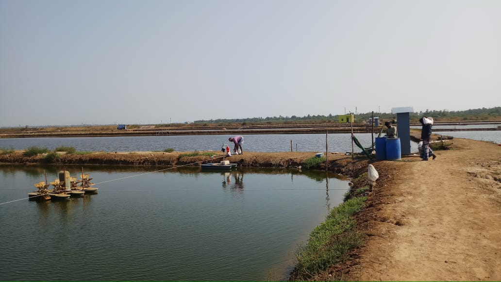 Salinity measurement in water on Shrimp farm at Karuvelankadai, Nagapattinam District